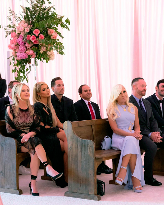 По различным данным, на церемонии присутствовало от шестидесяти до восьмидесяти гостей, среди которых были Мадонна, Пэрис Хилтон с супругом Картером Реумом, Донателла Версаче, Селена Гомес, Дрю Бэрримор и Уильям Адамс. А вот свою собственную семью Бритни приглашениями на торжество обделила. Стоит отметить, что сыновья поп-звезды Шон и Джейден в тот день тоже не появились.