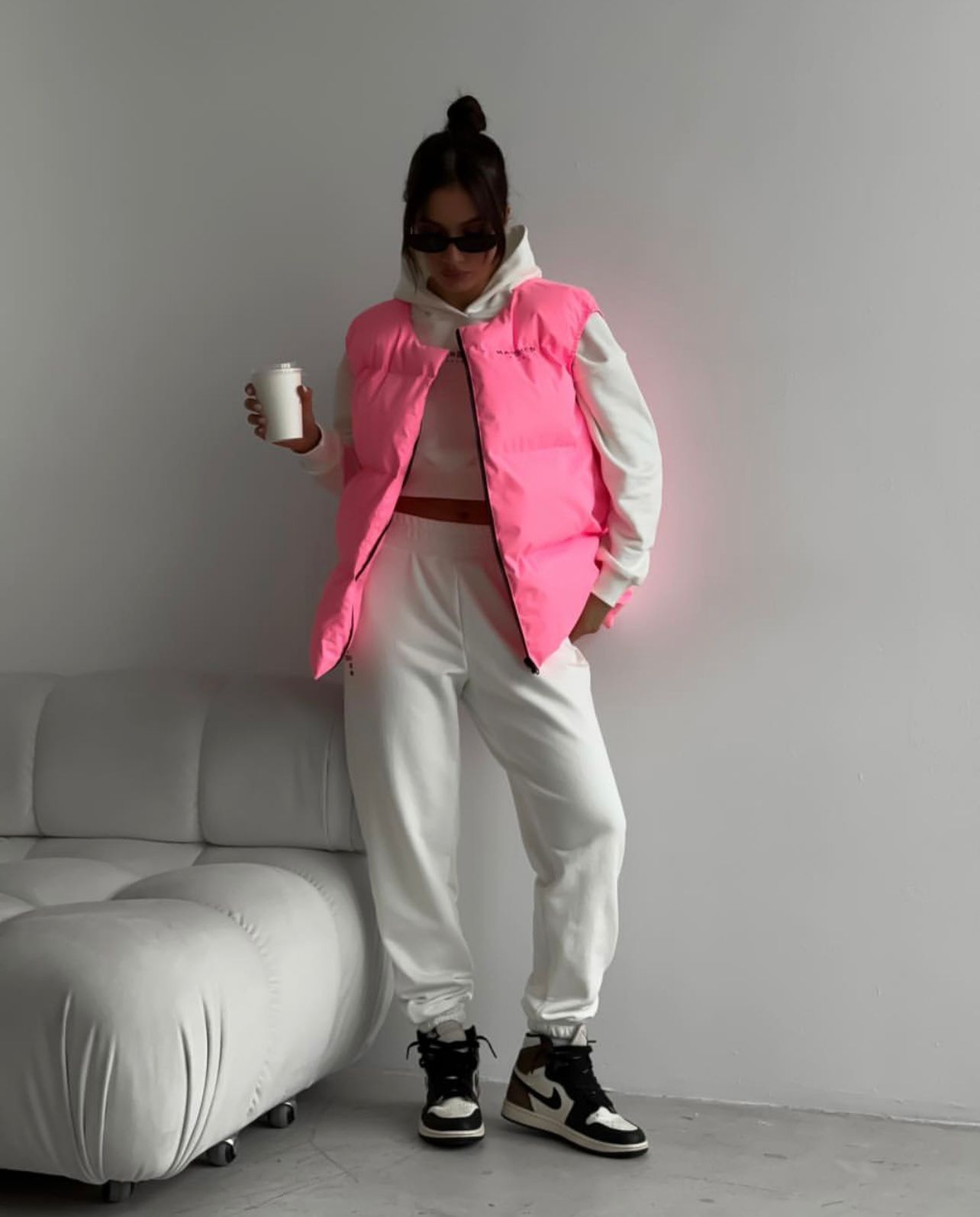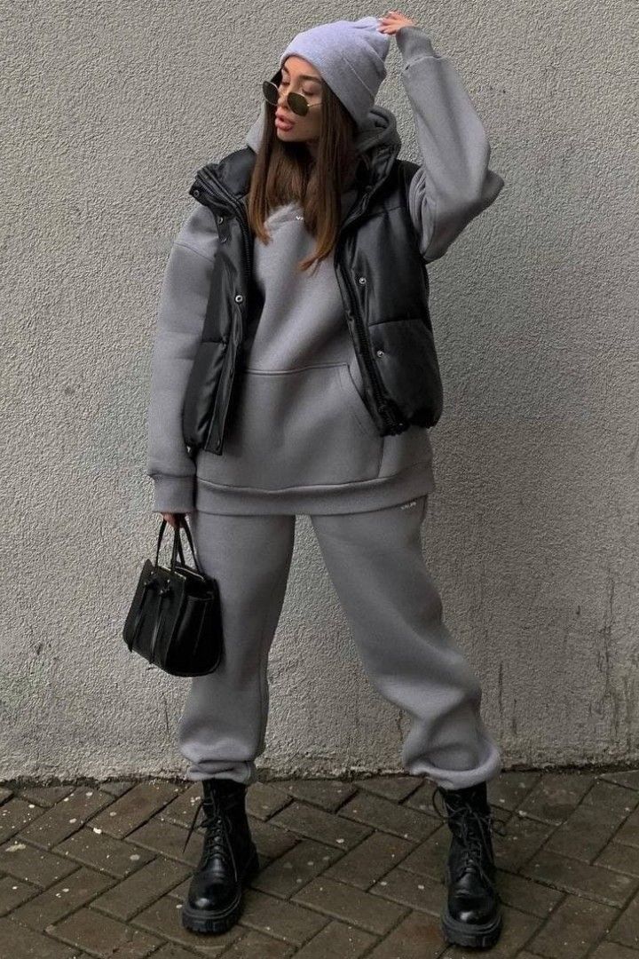 Так как эти майские не радуют нас теплом, еще одним вариантом стильного и уместного образа, будет сочетание спортивного костюма с дутой жилеткой. В настоящее время, во многих российских брендах представлены стильные спортивные костюмы и каждый может найти то, что придется по вкусу именно ему. Джегеры в сочетании с худи, дополненные дутой жилеткой также станут отличным стильным "луком" в такую погоду.