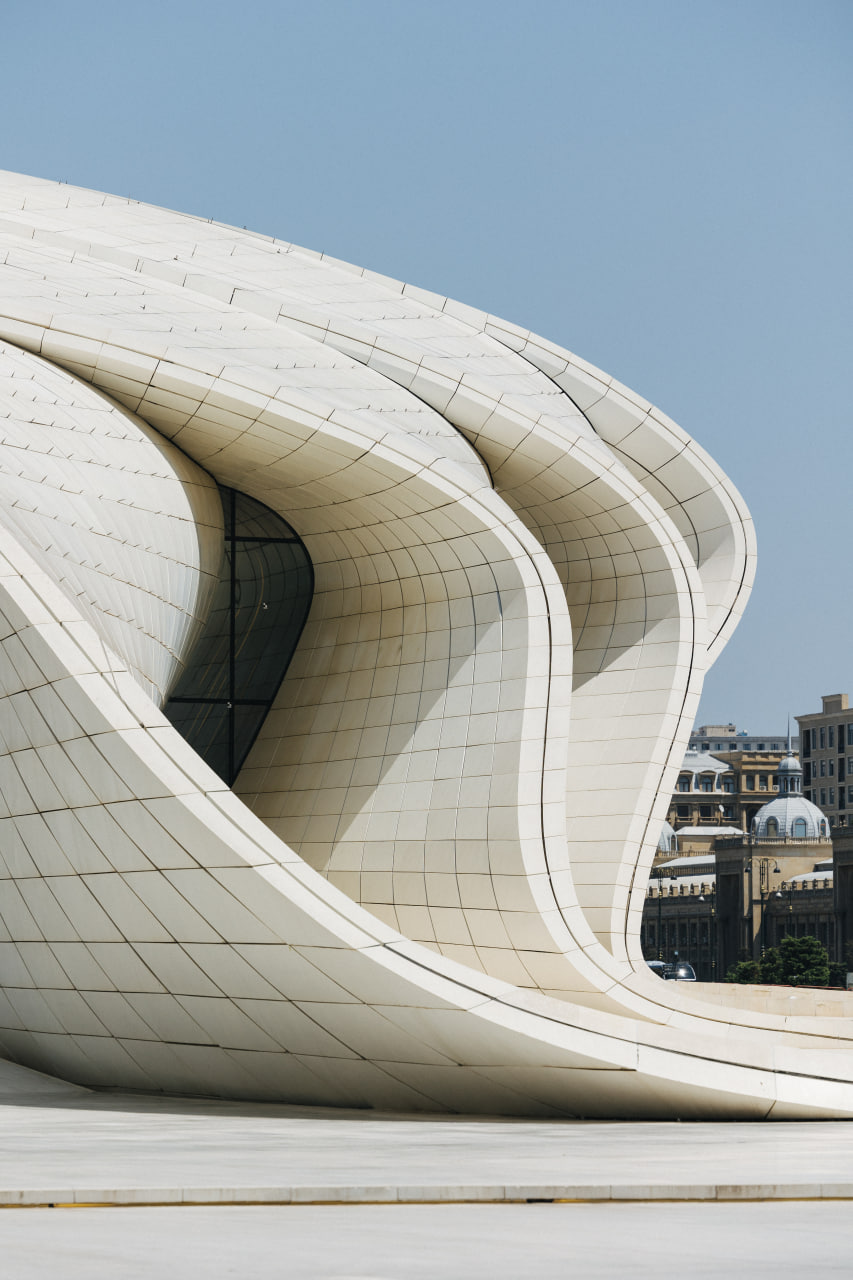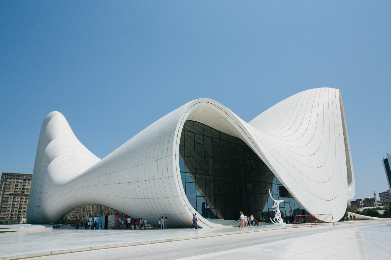 Очень красив и не менее известен Центр Гейдара Алиева, построенный по проекту ирако-британского архитектора и дизайнера Захи Хадид. Ее работы есть и в России, Европе, США. Форма белоснежного здания символизирует бесконечность, а если посмотреть на него сверху, то вместе с парковой зоной оно похоже на подпись экс-президента республики.